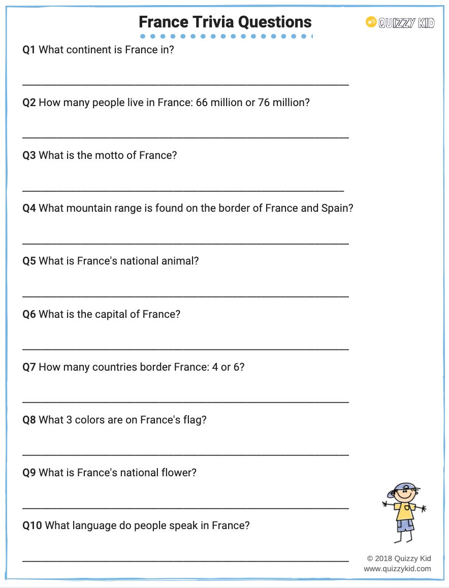 20 questions and answers about France. Ready to print pack.